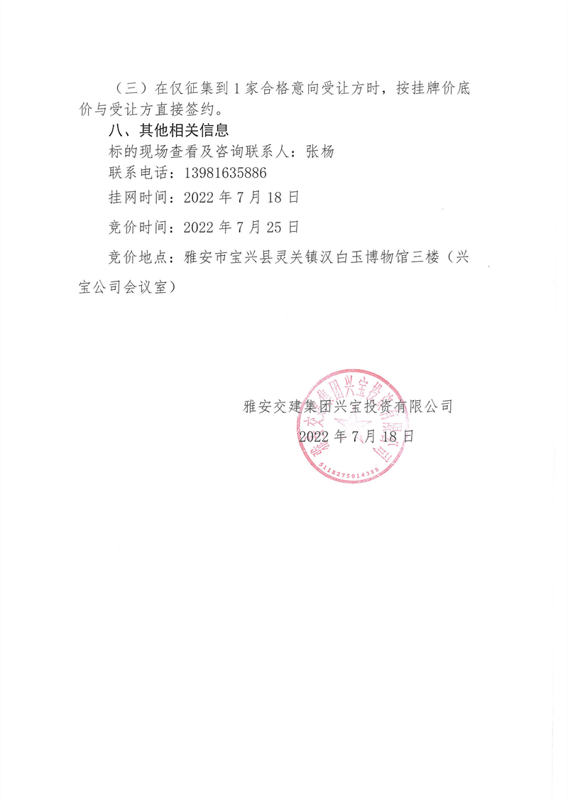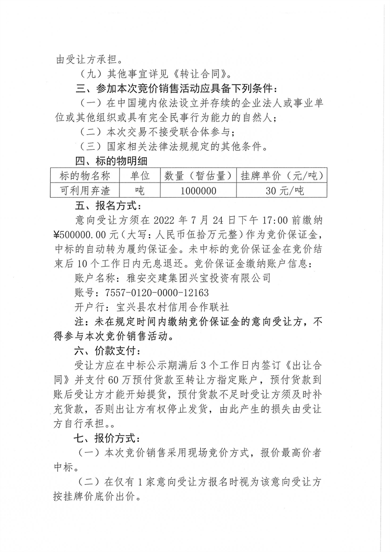 興寶公司寶興縣靈關(guān)鎮(zhèn)代碑寺土地整理項(xiàng)目10萬(wàn)噸可利用棄渣競(jìng)價(jià)銷售掛網(wǎng)公告掛網(wǎng)公告7.22(5萬(wàn)噸)